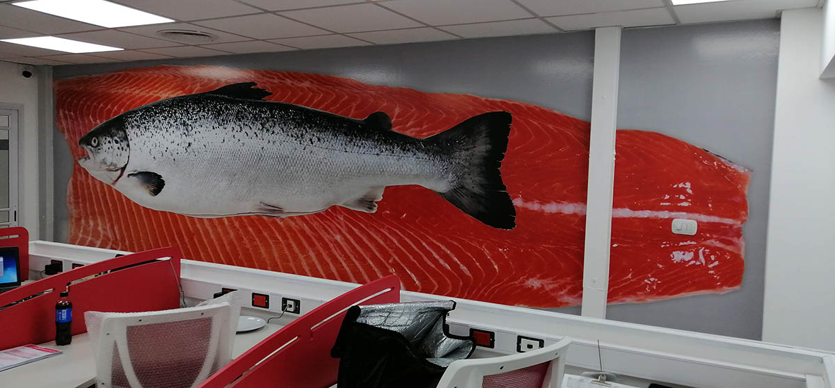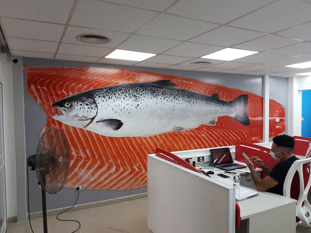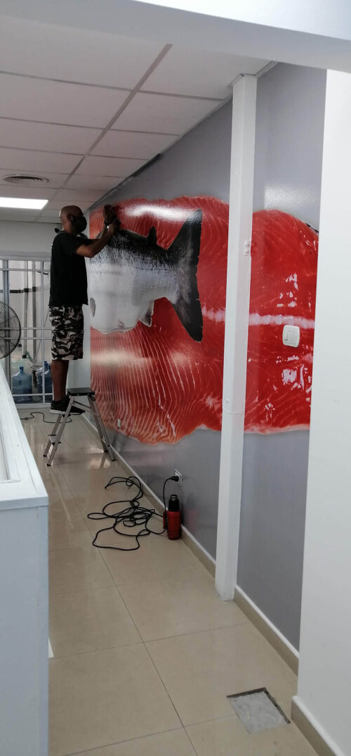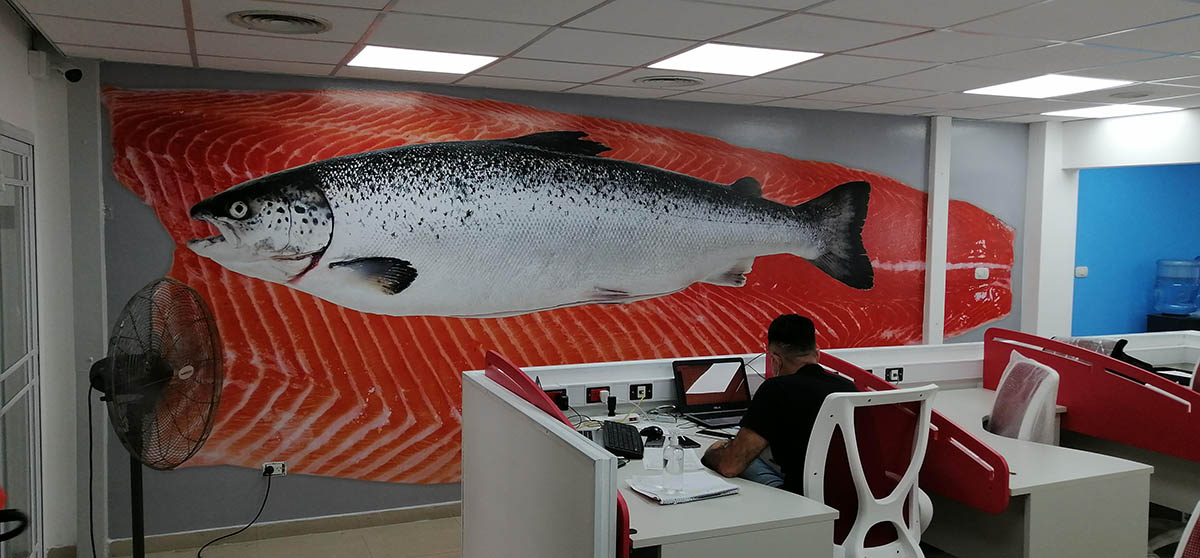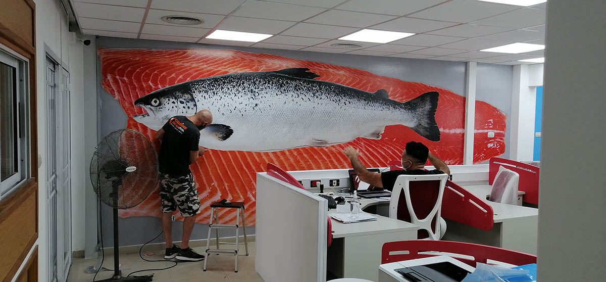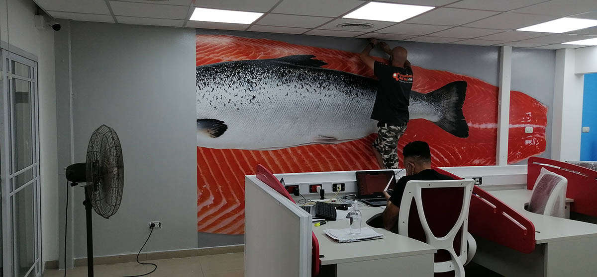 Mural vinilo sobre pared en oficina